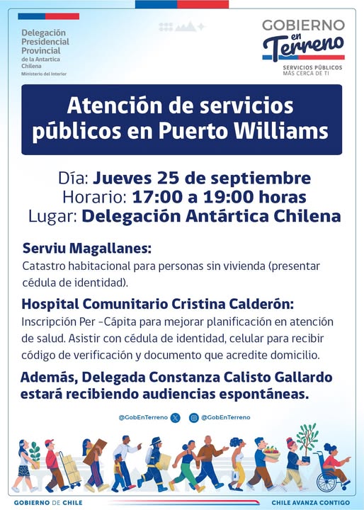 Entre las 17:00 y 19:00 horas, Serviu Magallanes 🏠, Hospital Comunitario Cristina Calderón 🏥, y audiencias espontáneas con la delegada Constanza Calisto Gallardo, estarán presentes en esta acción.