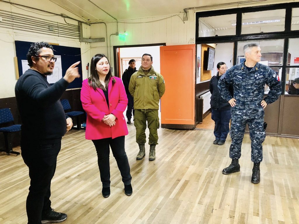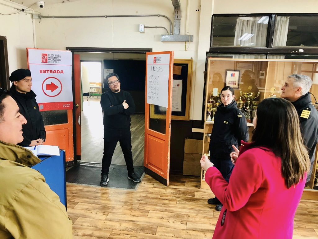 Los representantes de la Armada de Chile y Carabineros, encabezados por la delegada presidencial provincial de la Antártica Chilena, Constanza Calisto Gallardo, concurrieron hasta las dependencias del Liceo Donald Mc Intyre Griffiths, quienes fueron recibidos por el delegado de la Junta Electoral de dicha jurisdicción, Ericson Díaz.
