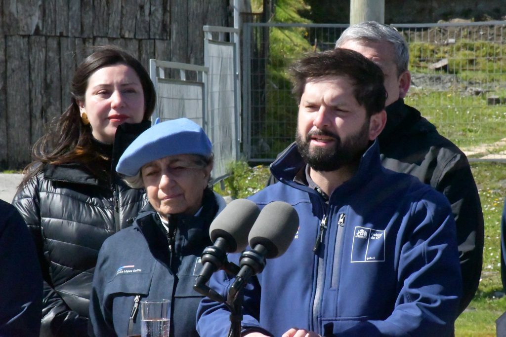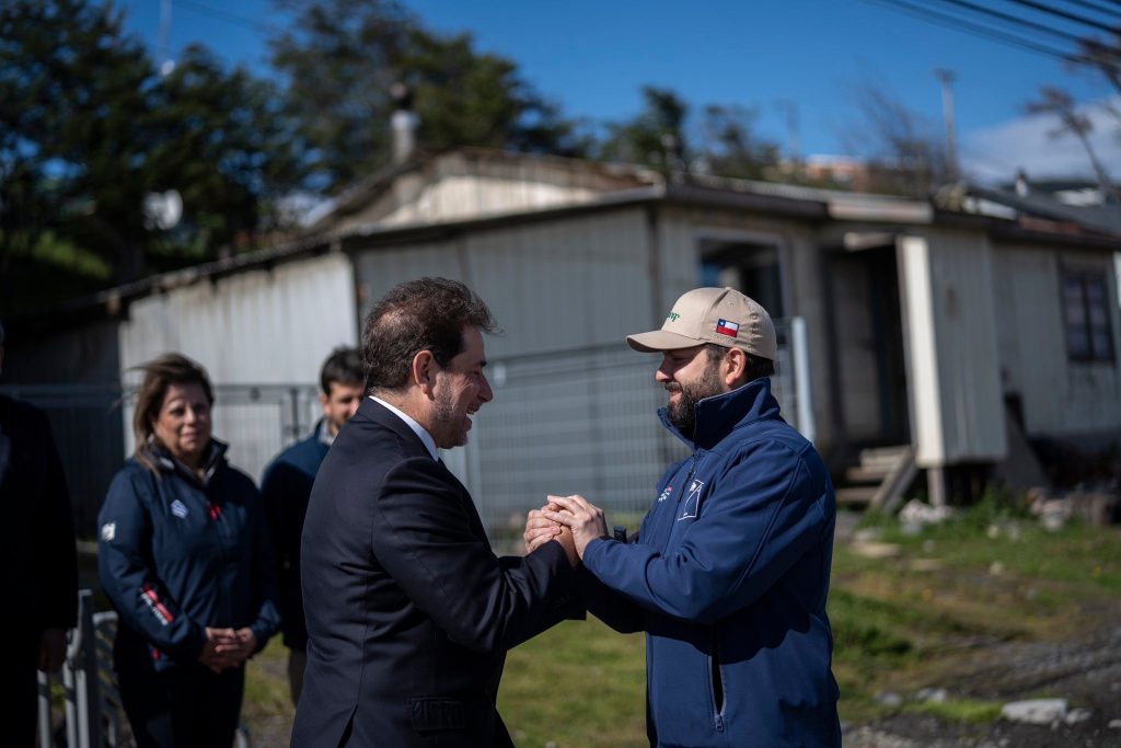 El mandatario visitó el lugar junto a la ministra de Obras Públicas, Jessica López; la gobernadora (s) de la Región de Magallanes y de la Antártica Chilena, Eugenia Mancilla; el delegado presidencial regional, José Ruiz; la delegada presidencial provincial, Constanza Calisto; el alcalde de Cabo de Hornos, Patricio Fernández; y el presidente de BancoEstado, Daniel Hojman.