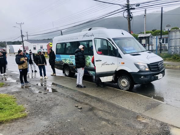 El vehículo con dirección a Puerto Navarino, distante 54 kilómetros de la capital provincial, posibilitó el traslado de visitantes que se organizaron para realizar este recorrido, aprovechando este día feriado para un viaje de distensión.