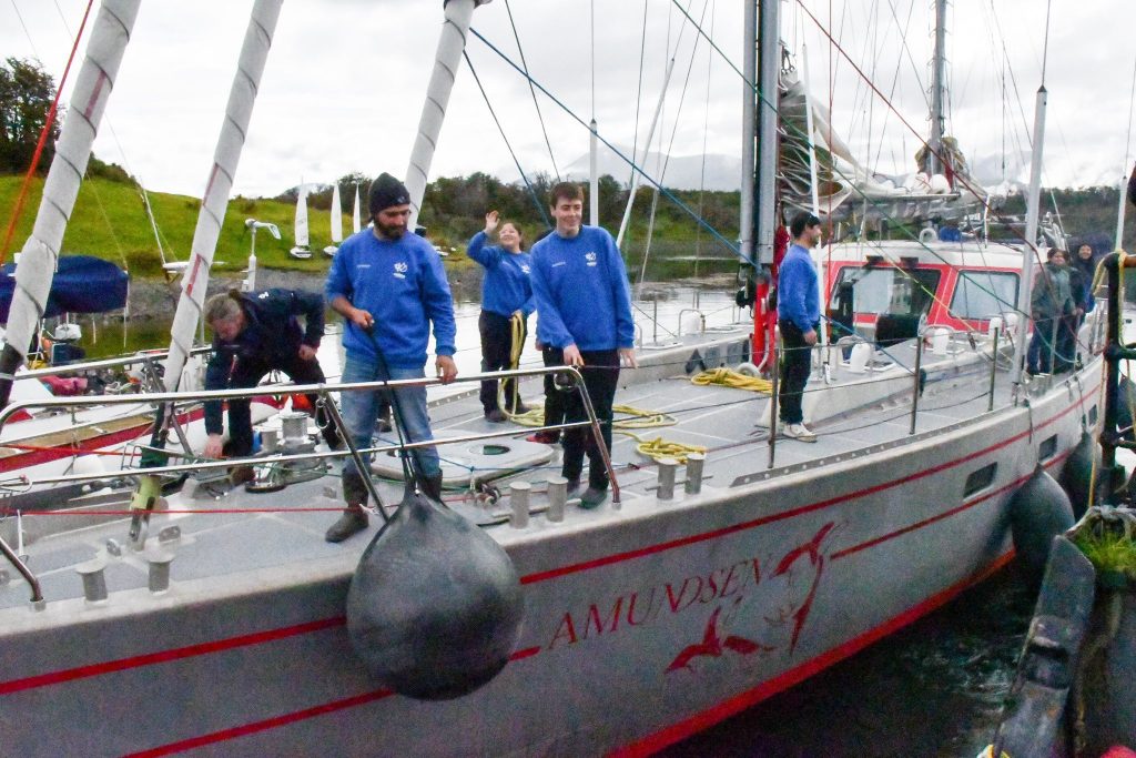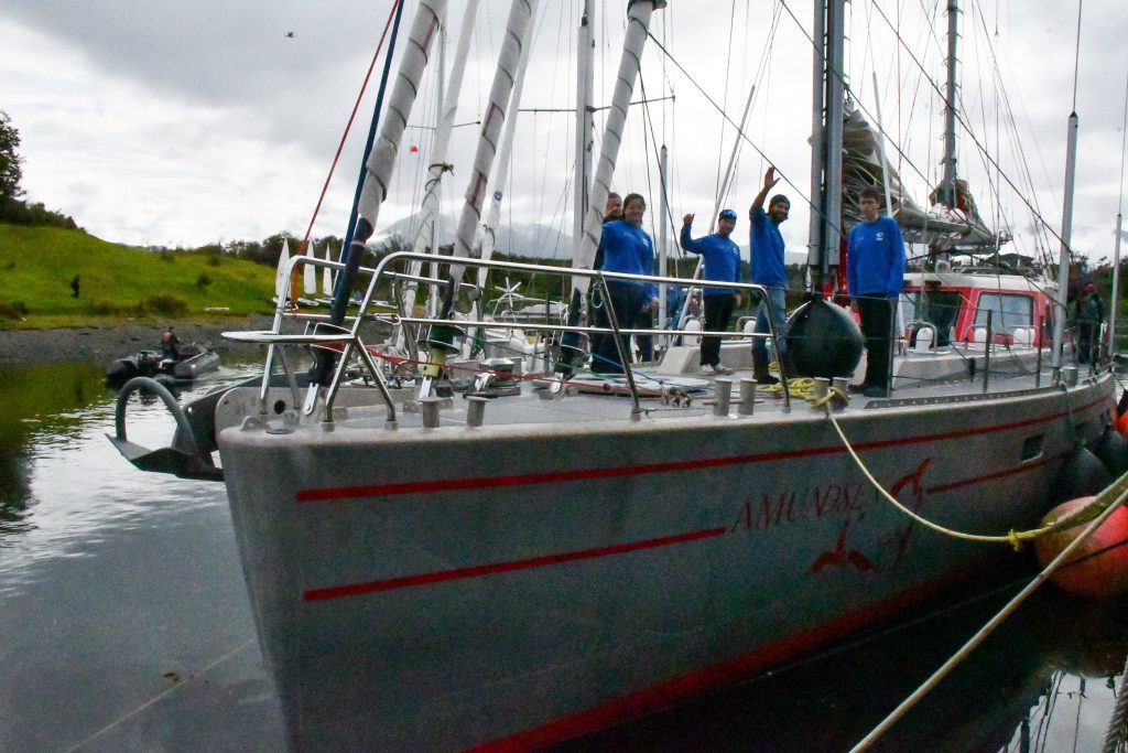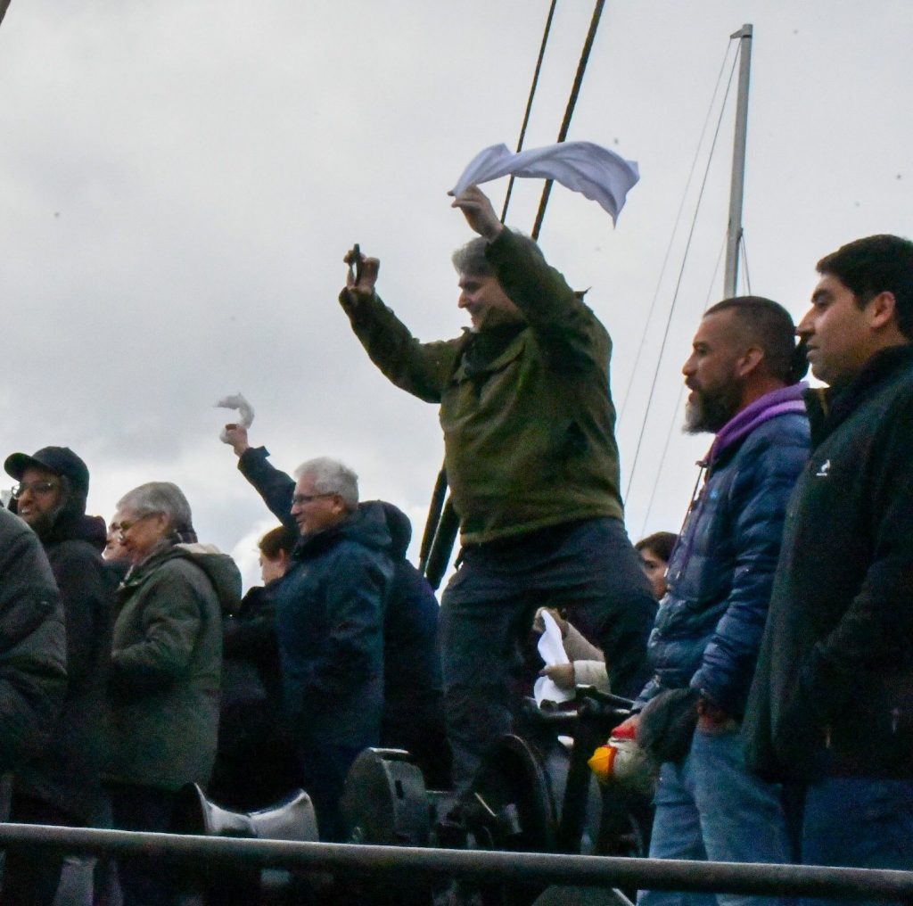 En una instancia llena de emotividad, la tripulación del velero “Amundsen” se despidió de familiares y cercanos en el Club Naval de Yates Micalvi, en Puerto Williams, minutos antes de zarpar hacia Sudáfrica, donde llegarán tras cerca de 30 días de navegación por el Océano Atlántico Sur 🌊