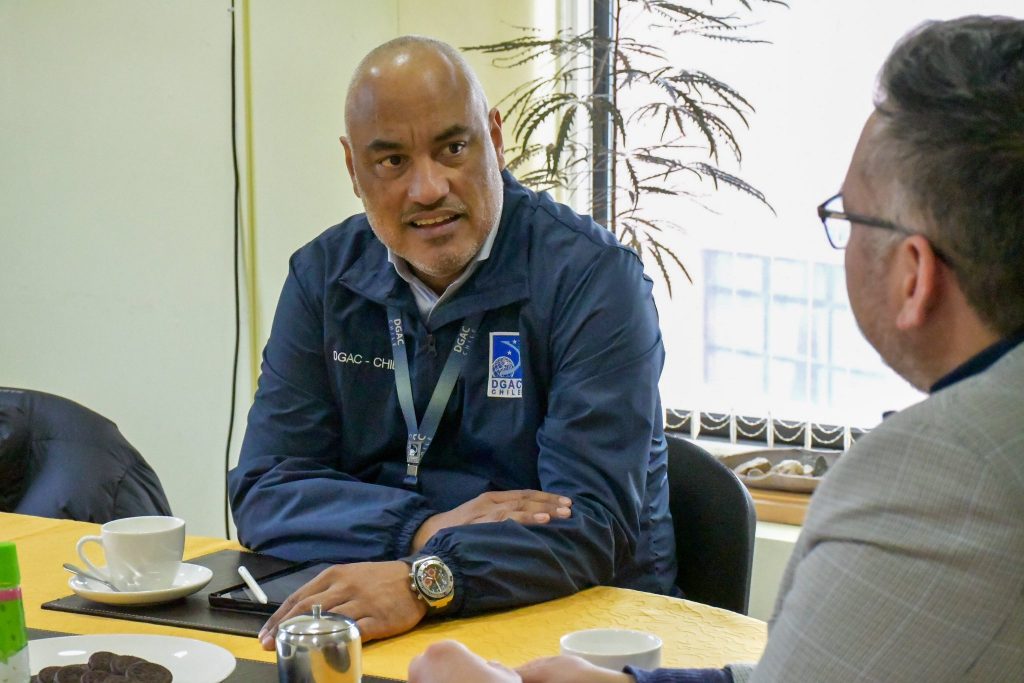 El jefe del Aeródromo Guardiamarina Zañartu, Guido Marín, realizó un saludo protocolar al delegado presidencial provincial Rodolfo Moncada Salazar, instancia en la que abordaron el fortalecimiento de la coordinación institucional ante emergencias y contingencias en la zona.